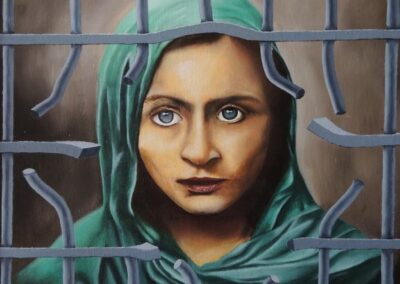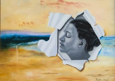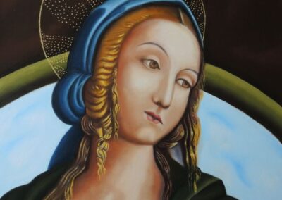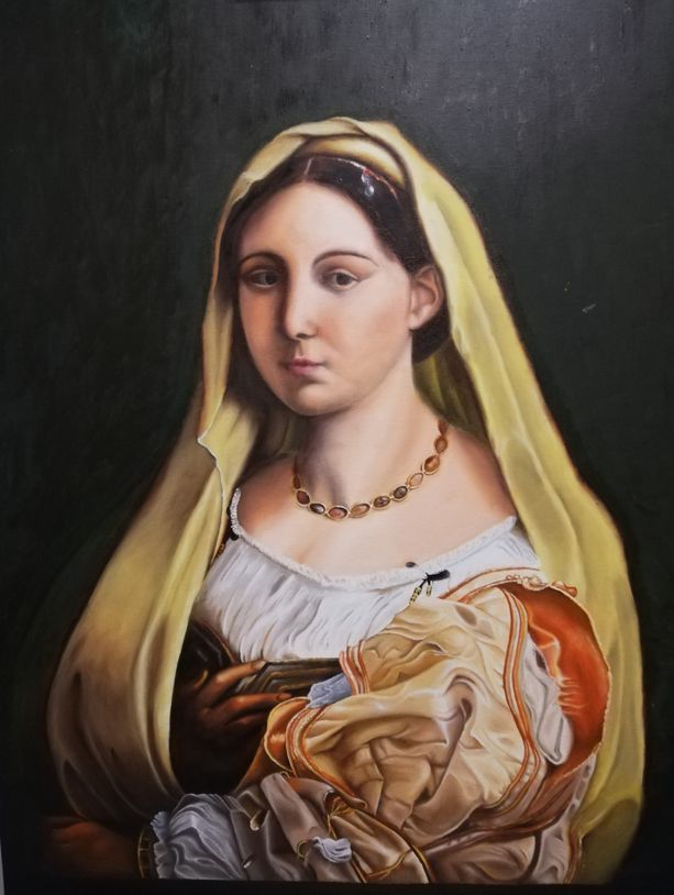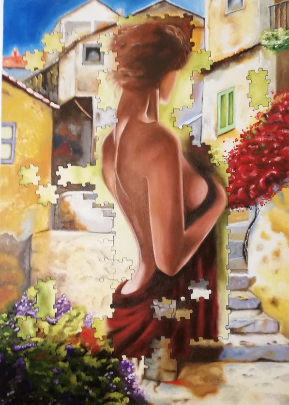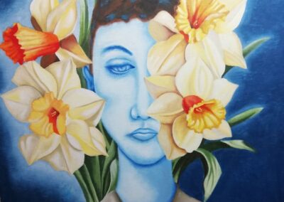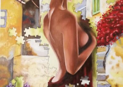 Per quanto riguarda la pittura ad olio, la mia ricerca artistica si è orientata da subito al surrealismo e al figurativo, attraverso principalmente immagini femminili riprese anche dai quadri dei grandi maestri del passato; ho sviluppato una mia personale simbologia inserendo nelle mie tele, a seconda dei casi, immagini di grate, tessere dei puzzle o carta strappata, che rappresentano il mio sguardo critico nei confronti della società.