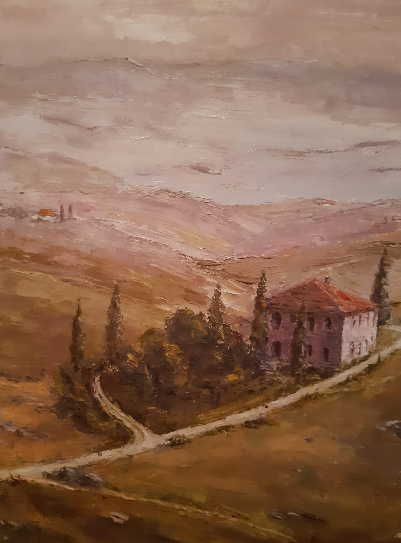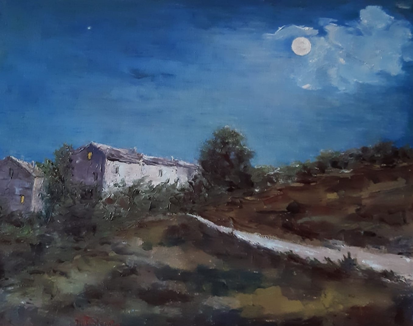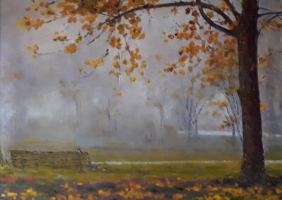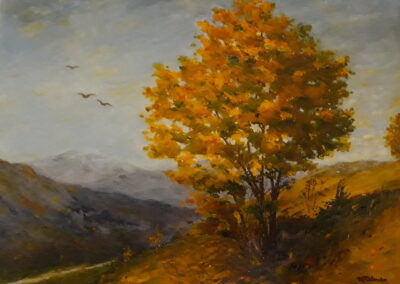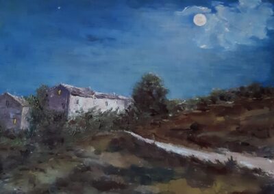 I suo colori sono a volte caldi nei toni, a volte con quegli accentuati spazi di luce che riflettono il suo stato d’animo. Nei suoi paesaggi vengono trasformate gradatamente le immagini che è il bello ed esprime la caratterialità dell’artista.
