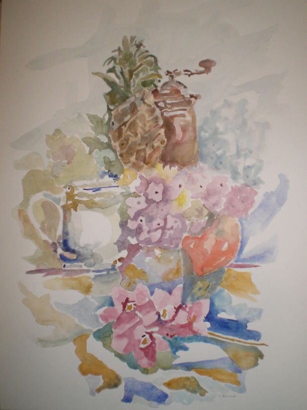 I suoi soggetti preferiti sono composizioni floreali e naturamortiste, ma non ne tralascia altri più originali e astratti. Usa sapienti “vuoti “ in cui il fondo diventa luce assoluta.
