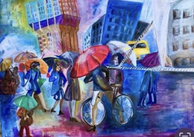 Collabora ad eventi di cui realizza locandine , partecipa a mostre collettive di varie associazioni artistiche milanesi . Pur senza mai abbandonare la tecnica olio si avvicina in questi ultimi anni all’acquerello e ne resta affascinata . Con altre due acquerelliste fonda il gruppo “ Le Gemelle Diverse “ Il gruppo al suo attivo ha gia’ 5 mostre di acquerello .