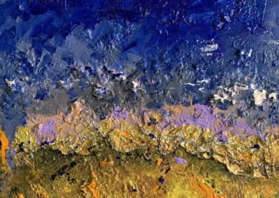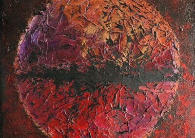 E’ sedotto dall’astrattismo e dall’arte informale perché sente, per dirla alla Kandinsky, che “il colore è un potere che influenza direttamente l’anima”. I colori dei suoi quadri manifestano la necessità di dare sfogo ad una esigenza interiore e con il segno astratto raggiunge un linguaggio pittorico di alta intensità espressiva e di grande energia.