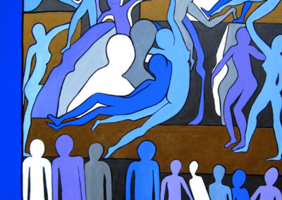 nella Sezione Tessitura, dove conosce tecniche diverse come batik, stampa serigrafica e a cartone, lavora sui telai Jaquard e quelli in legno per creare arazzi, crea tappeti. Il disegno è la materia prima per attuare le varie tecniche che arricchiscono le sue esperienze.