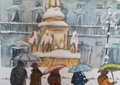 Frequentando il CAM Lampugnano, mi sono iscritta al corso di Acquerello sotto la guida del maestro Davide Platania, socio del Gruppo Sirio. Mi sono appassionata a questa tecnica e ho conosciuto anche l’Associazione Sirio di cui ora faccio parte.