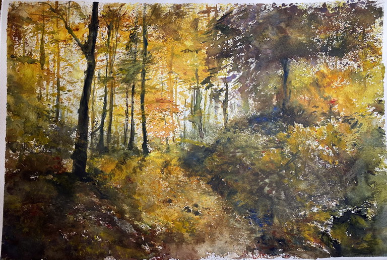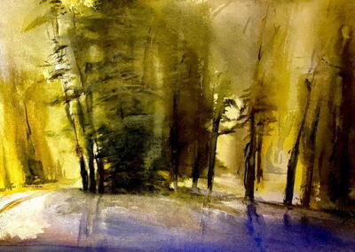 Continua ultimamente con l’acquerello, esternando emozioni intime e più immediate in modo informale.